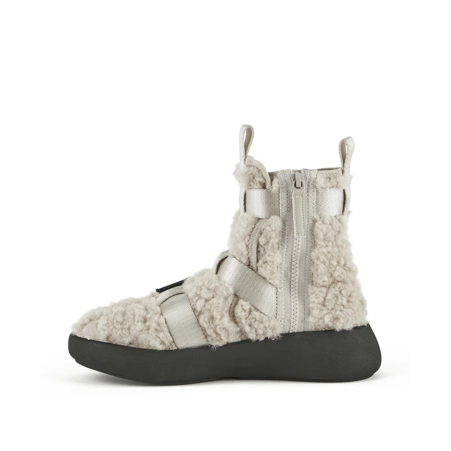 The Bo Galaxy is a unisex high top with adjustable straps, pull tabs, and a side zipper for easy on and off wear. Available in quilted neoprene and faux shearling uppers.