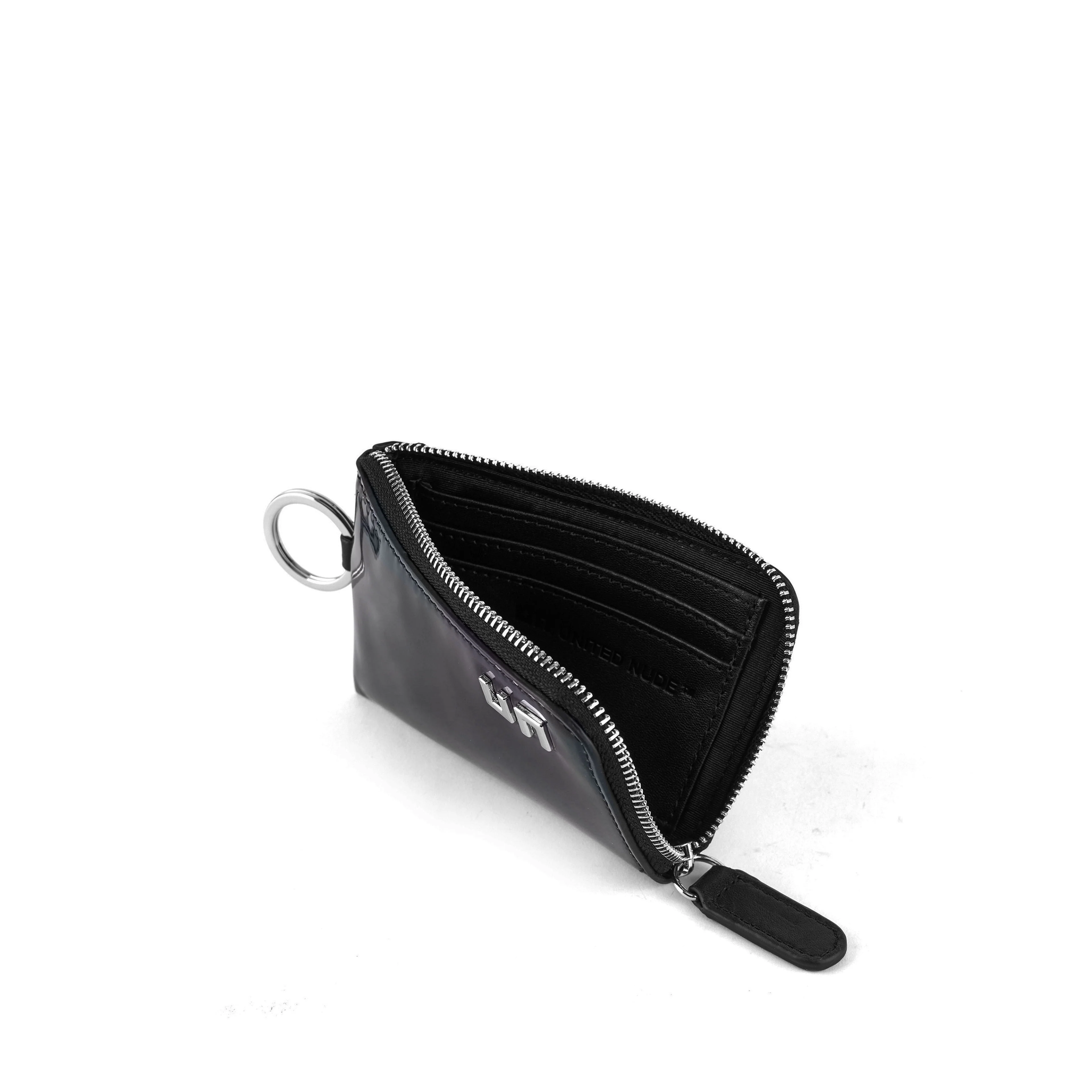 The Coin Wallet is a zippered wallet with a mirrored metallic exterior and a compact design.