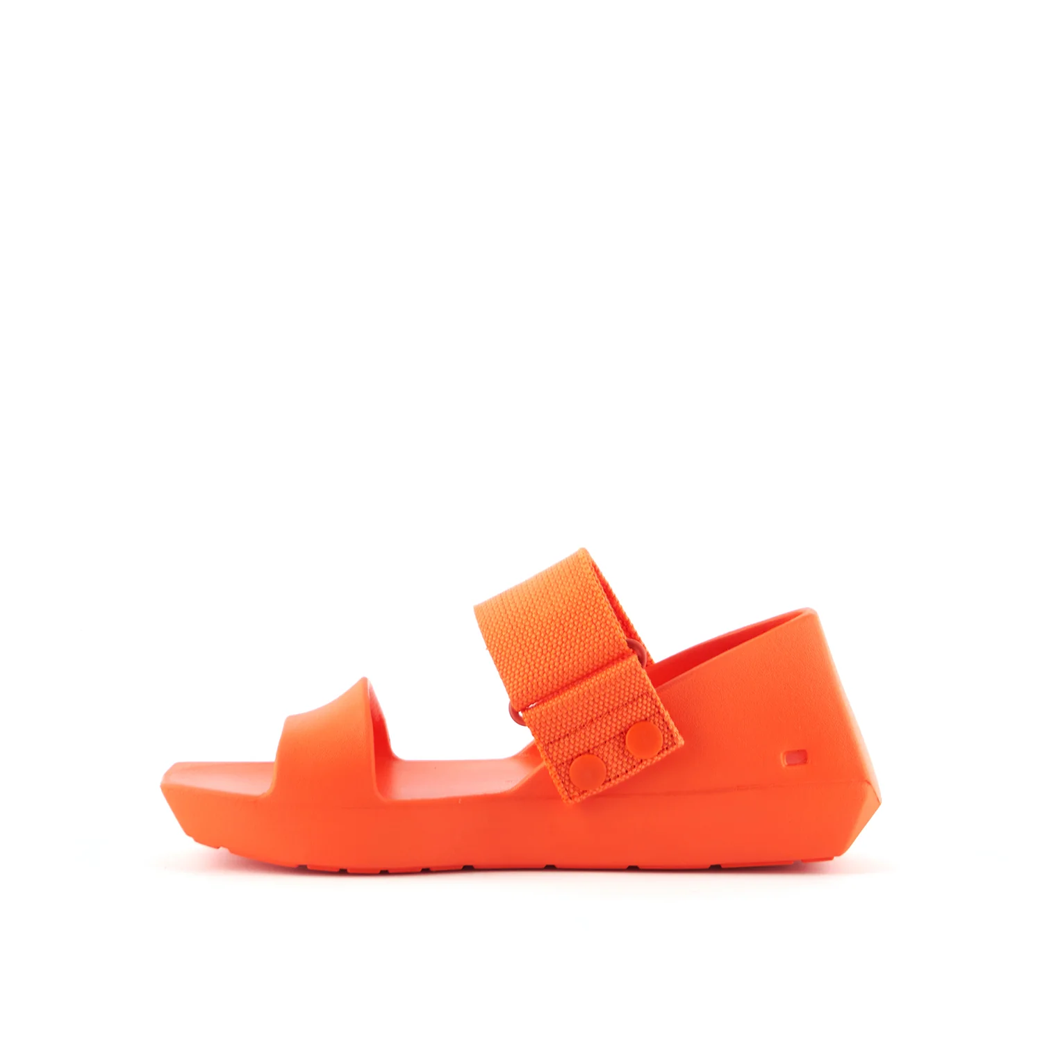 The Hybrid Jane Lo is a flat EVA foam rubber sandal with a sporty silhouette, a wide Mary Jane strap, and an adjustable hook and loop closure. Crafted from lightweight EVA foam rubber using a simplified one-piece design, this sandal offers both practicality and comfort with sustainability in mind.