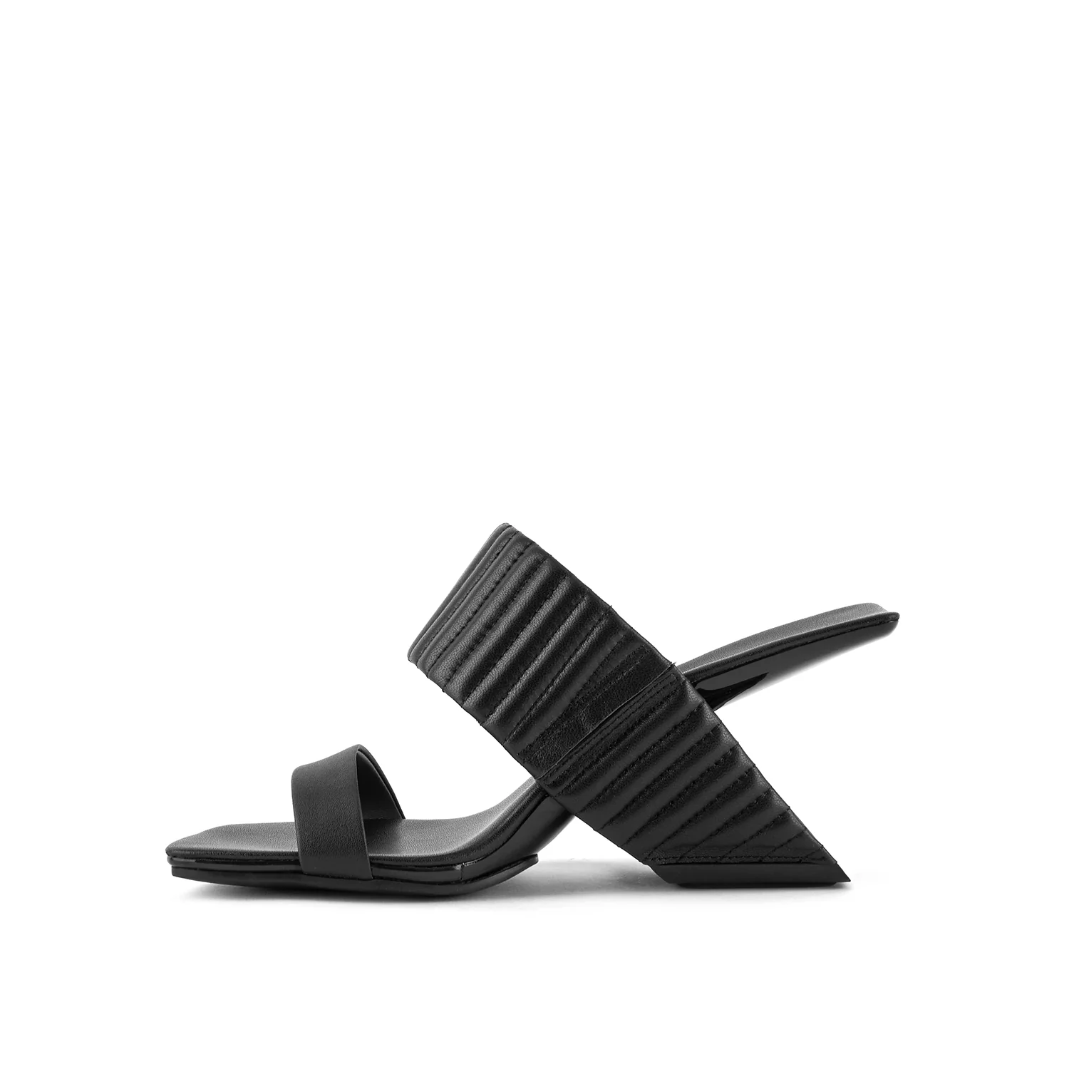 Introduced in 2004, the Loop Hi returns with elevated textural appeal. United Nude's iconic Loop silhouette features a floating leather footbed that slips through a loop, functioning as both the heel and the upper. The molded leather footbed is supported by a sturdy fiber-reinforced nylon heel, and hidden elastics in the top strap ensure a secure and comfortable fit. The heel forms a striking cantilevered architectural structure, adding a unique and futuristic element to the design.