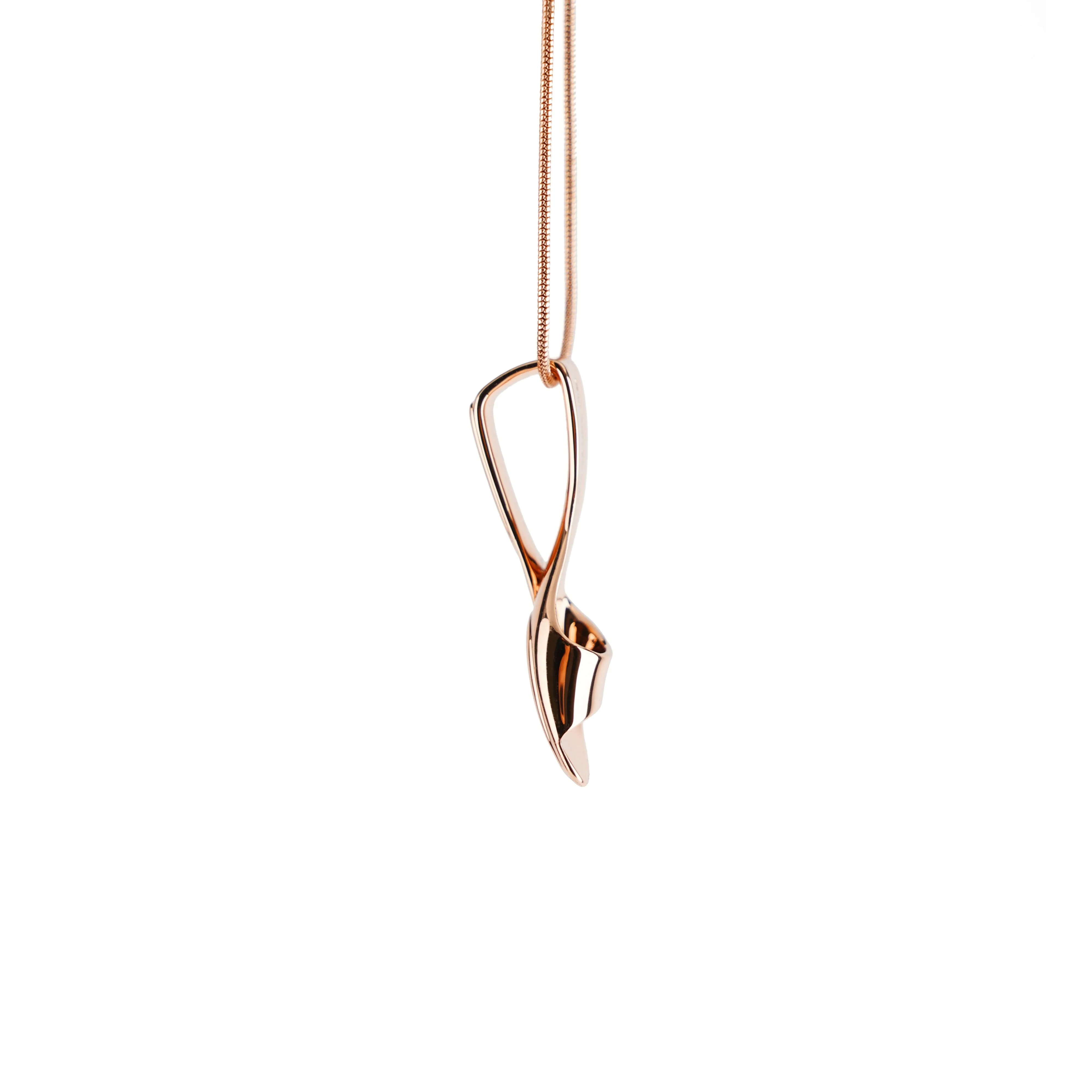 The Mini Mobius necklace, crafted in 14k rose gold plating, is a special tribute to United Nude's signature heel silhouette.