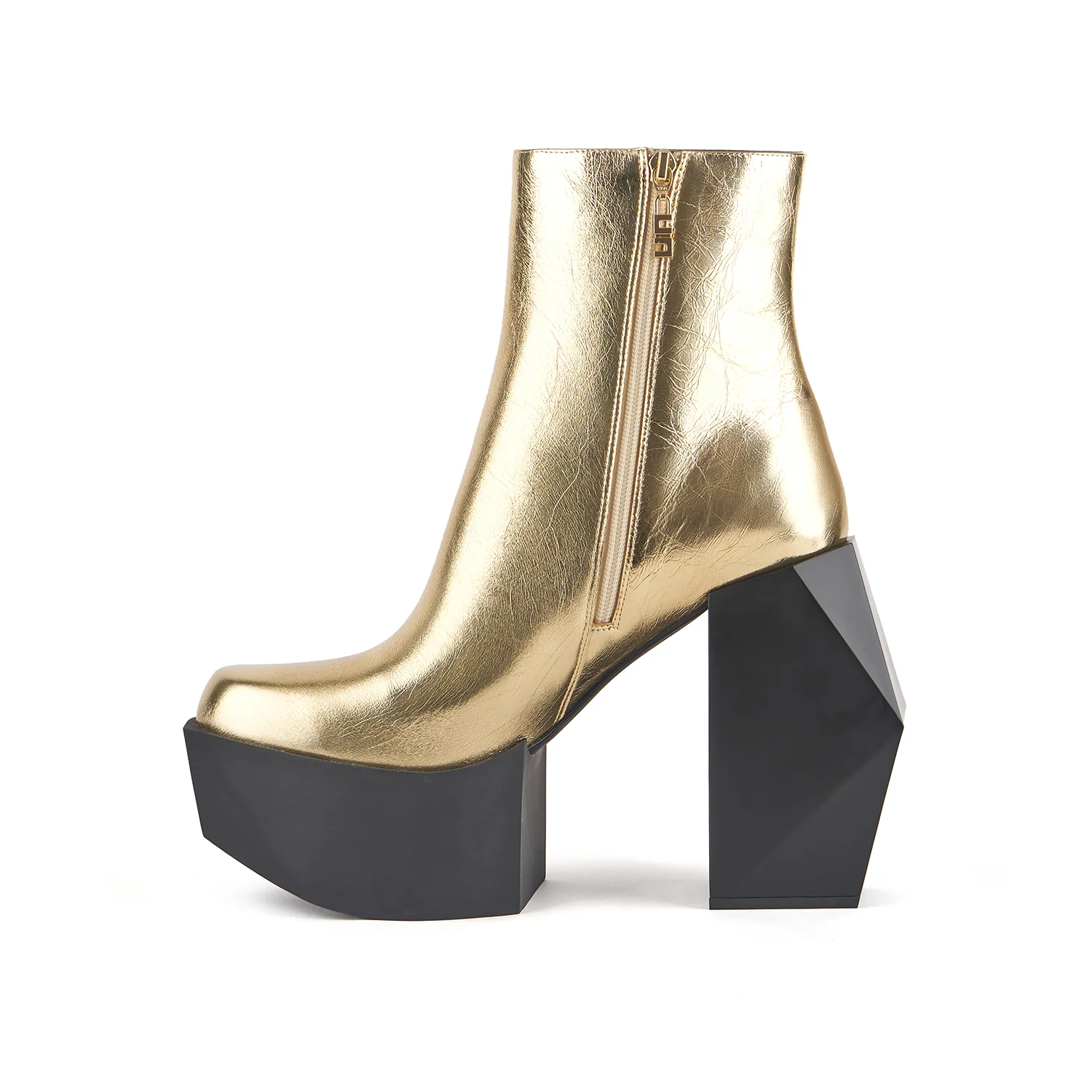The Stage Boot Mens is an ultra-high platform boot with a polyhedral heel.
