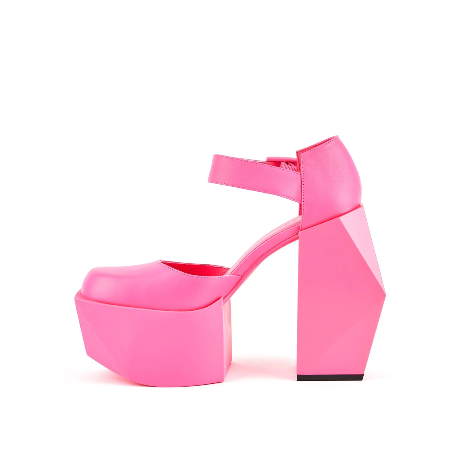 The Stage Dorsey is an ultra-high platform boot with a polyhedral heel.